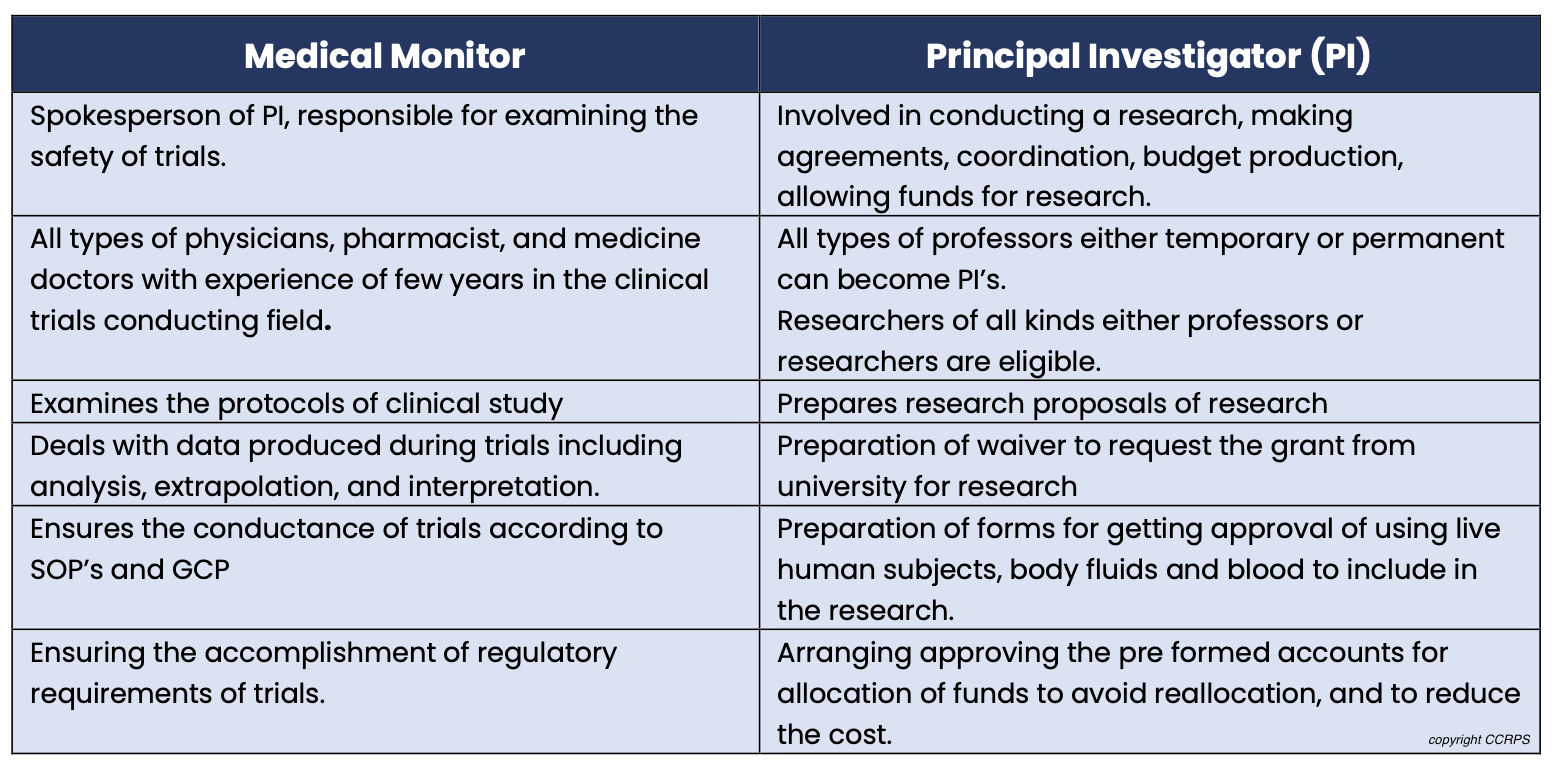 Difference between a Medical Monitor and Principal Investigator
